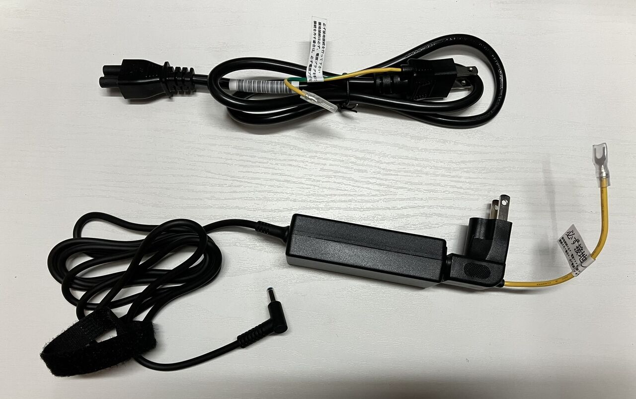 ACアダプタに電源コードと別に直結アダプタがついています。電源コードの代わりに直結用アダプタを使うと持ち運びに便利そうです。