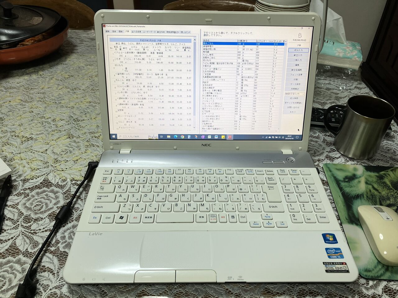 ノートPCではメールやブラウザの利用がメインで、ソフトは表計算ソフトと食事記録ソフトくらいです。