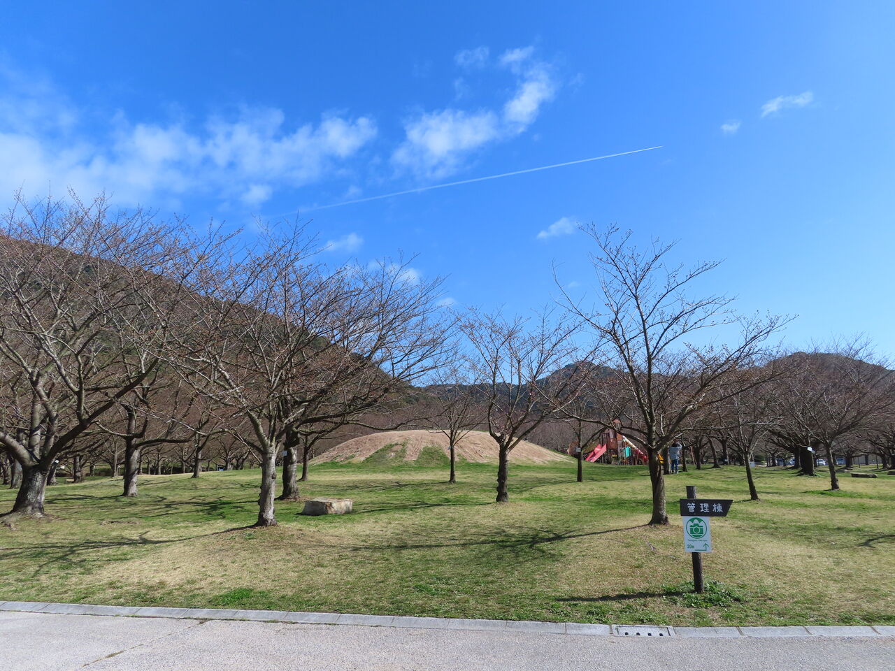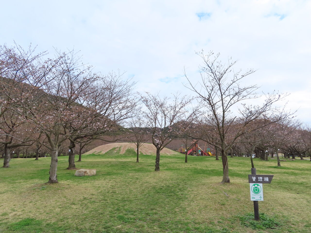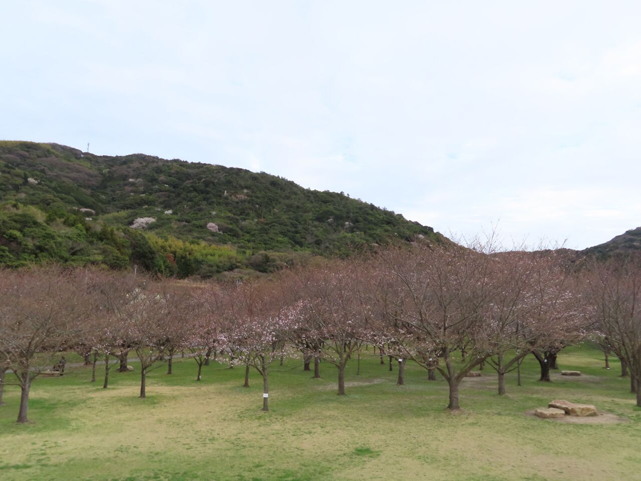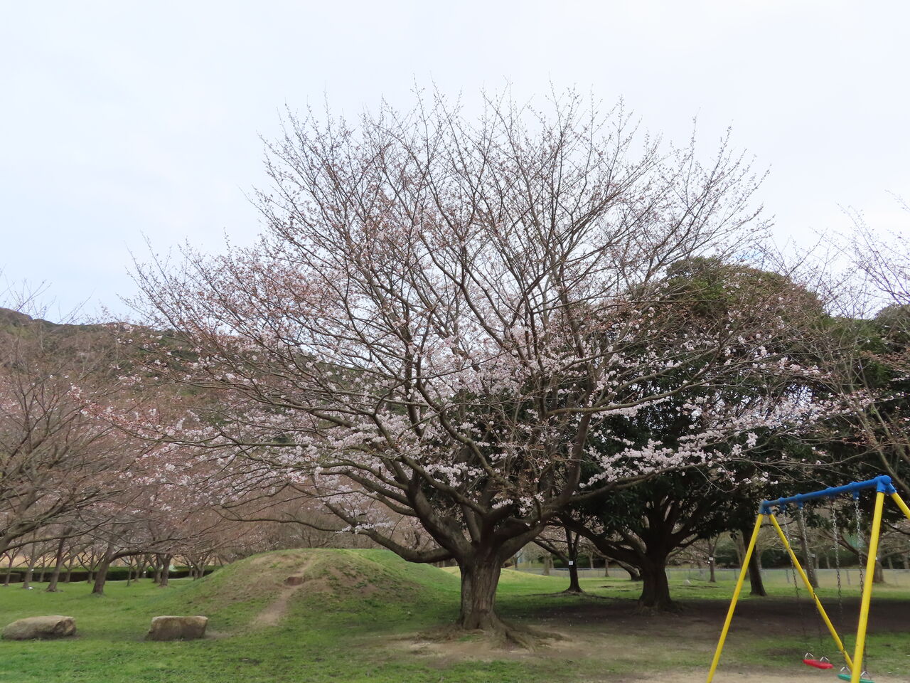 気象協会の下関の開花情報が3月21日開花、4月1日満開との事なので、運動公園は2日遅れの4月3日くらいが満開になるのではないかと思います。