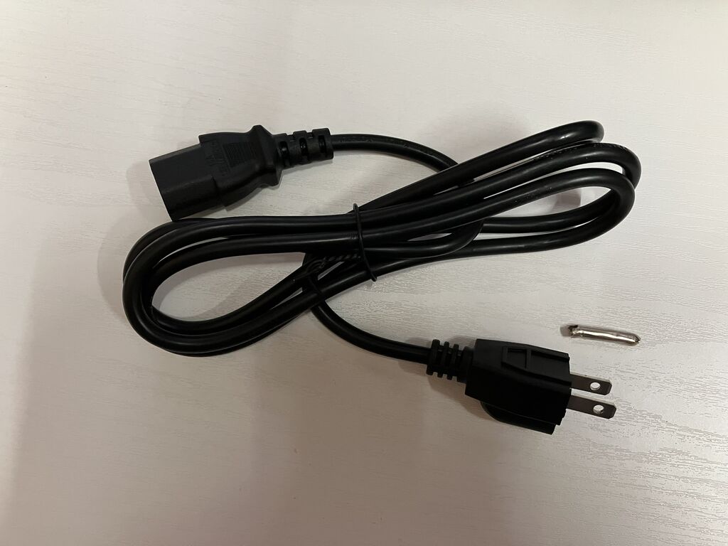 電源ケーブルは3極なので、そのままでは普通のコンセントに差せないので、アース端子を折って取りました。