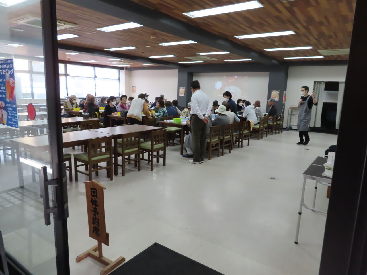 次は山口市瑠璃光寺そばの長州苑で昼食でした。食事と買い物について説明中です。