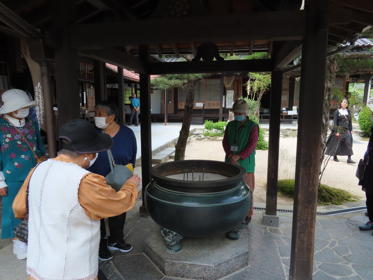 買い物の次は瑠璃光寺の見学です。ボランティア説明員の方に案内していただきました。