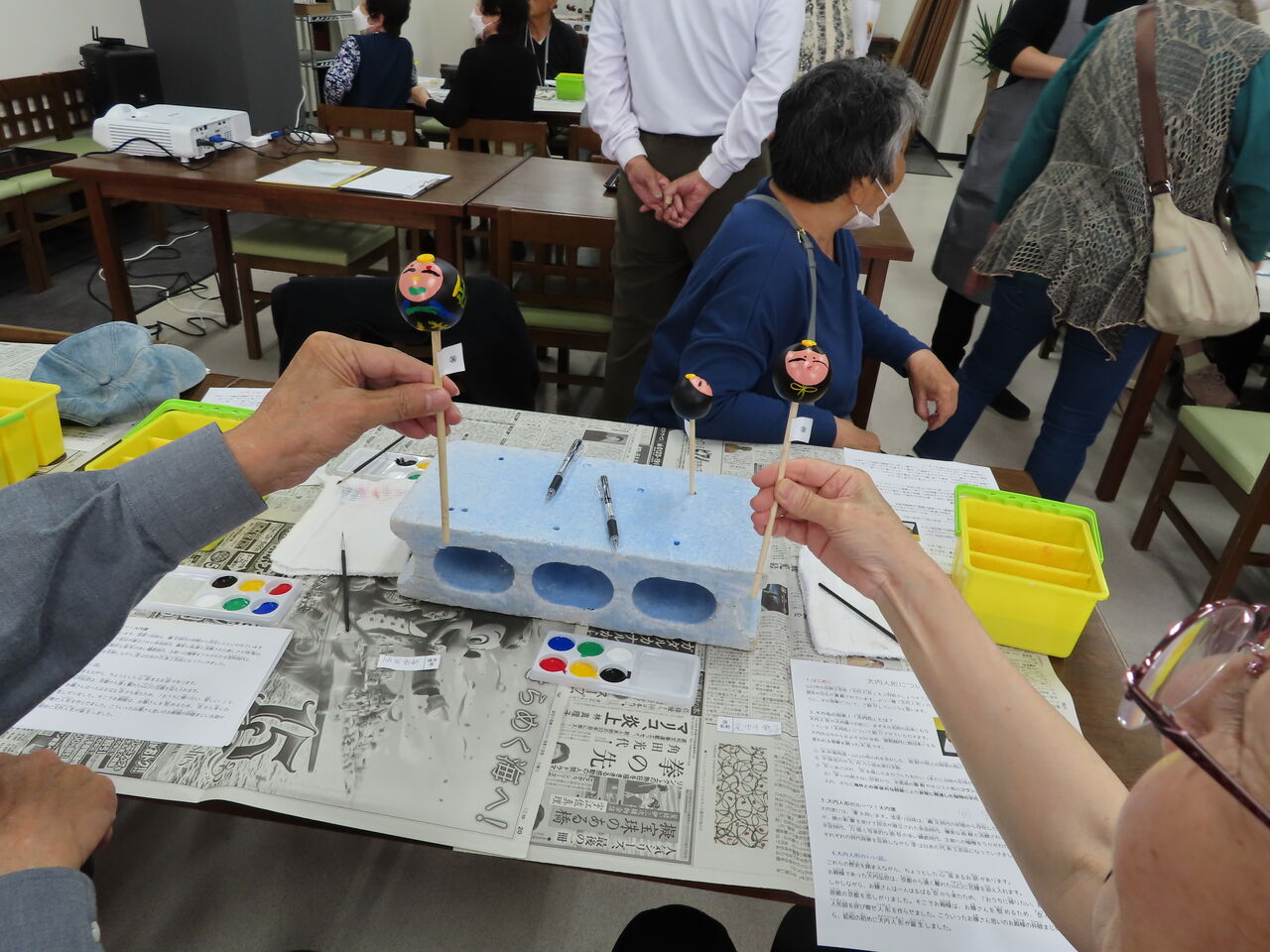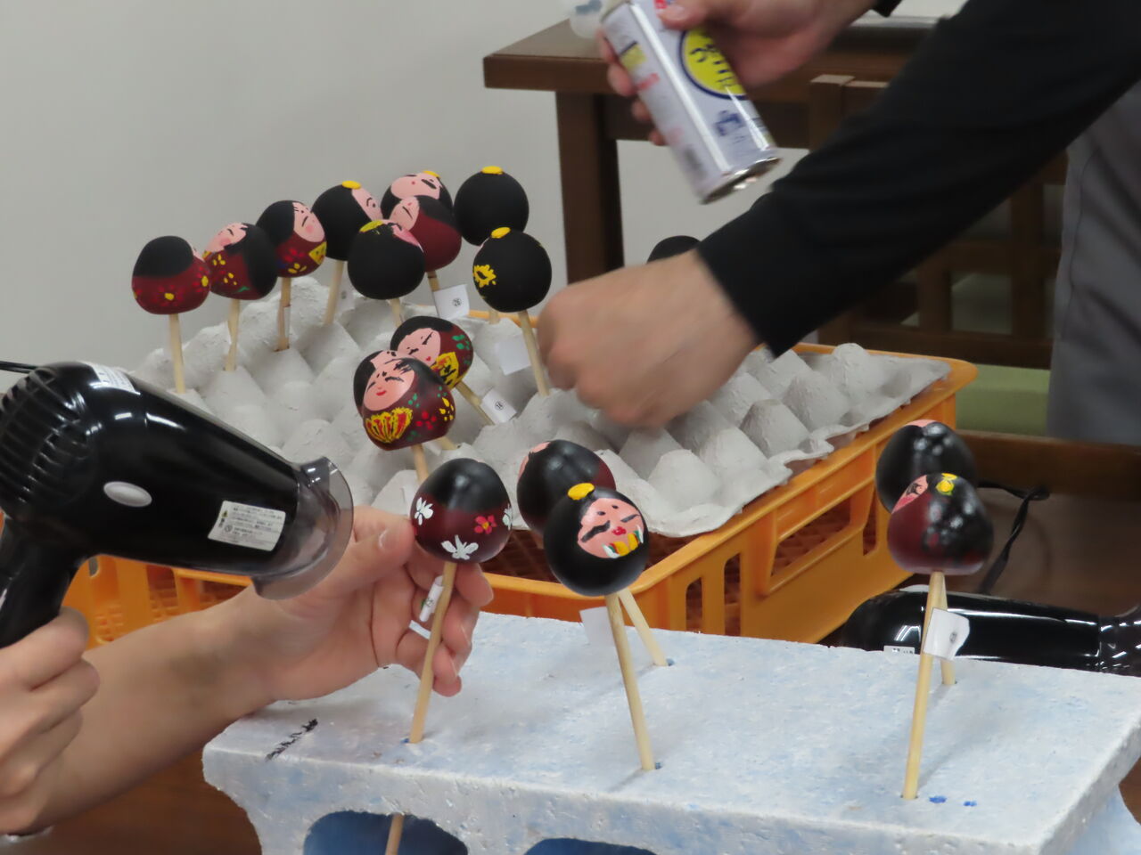 瑠璃光寺の後は、長州苑に戻って大内人形の絵付け体験をしました。