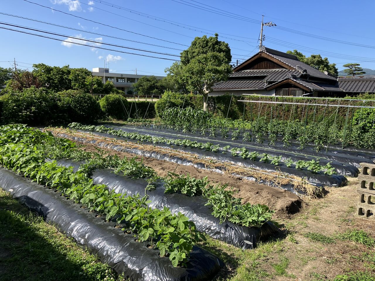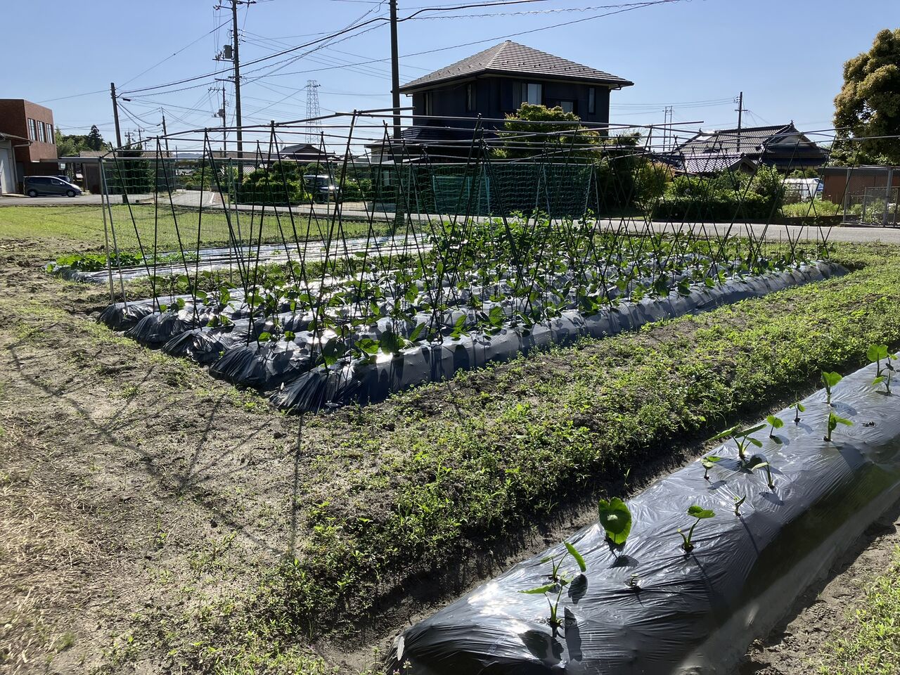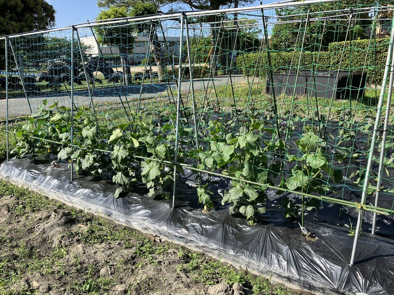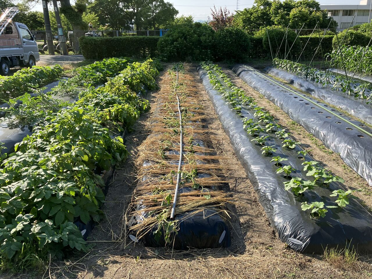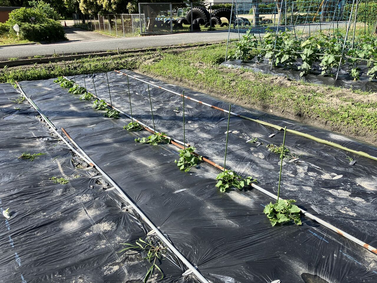 来週は給水タンクとホースの設置、ナス、ピーマンの誘引作業などをやります。