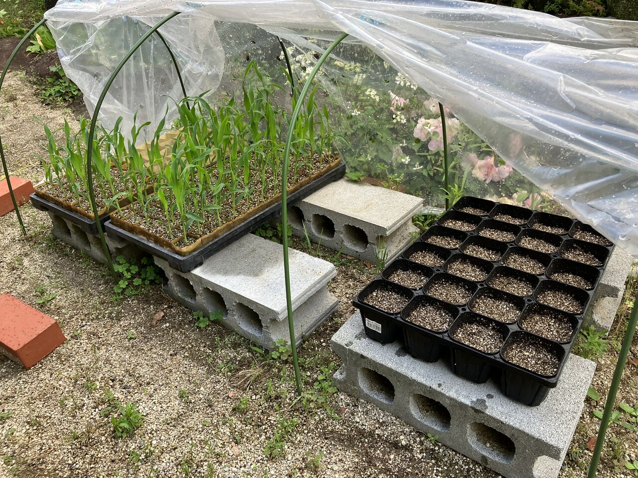 庭の育苗トンネルに置きました。