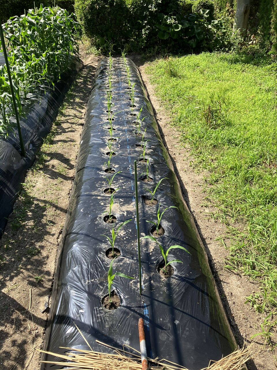 1畝では苗が余るので、2回目のスィートコーンを植える予定の畝にも植えました。