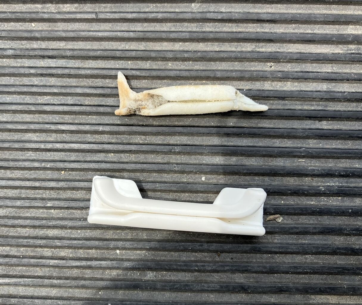 問題の左前のプロテクターと交換用プロテクターです。かなり劣化してます。