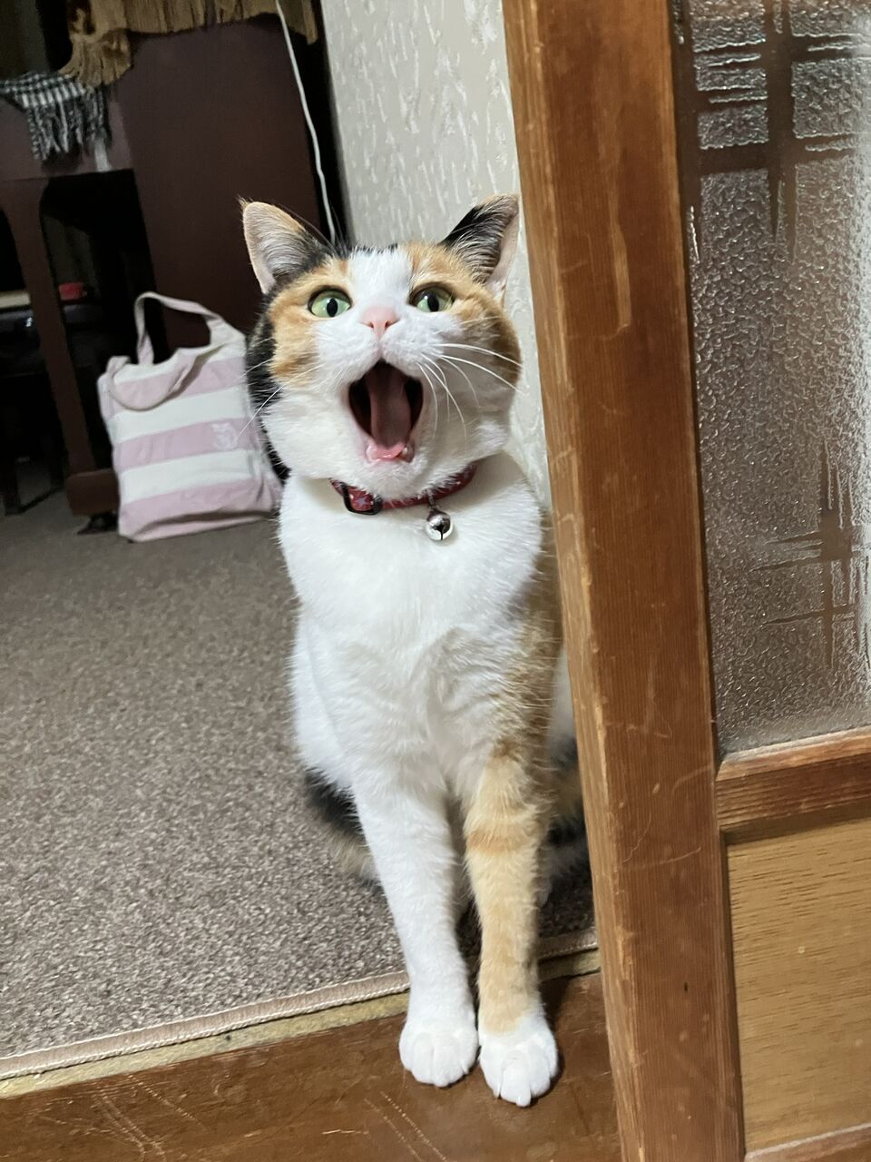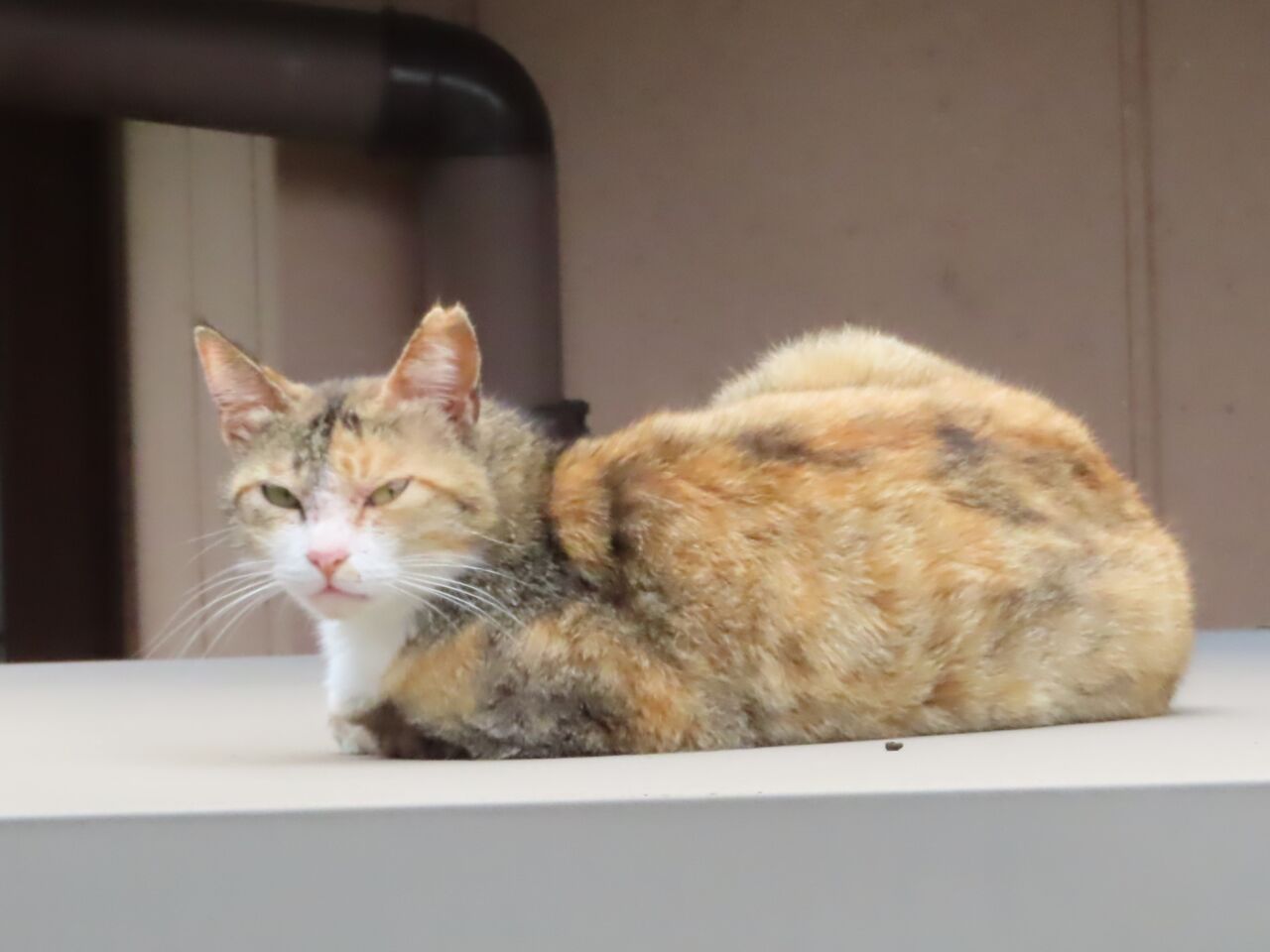 最近、近所にいる野良の三毛猫ですが、左耳がカットされた「さくらねこ」です。