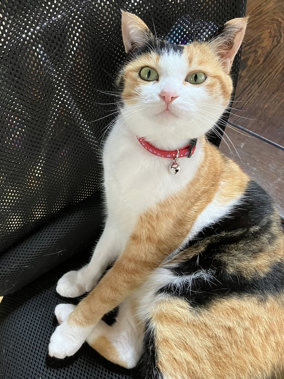 昼間は椅子の上で寝てる事も多いです。「何か用?」