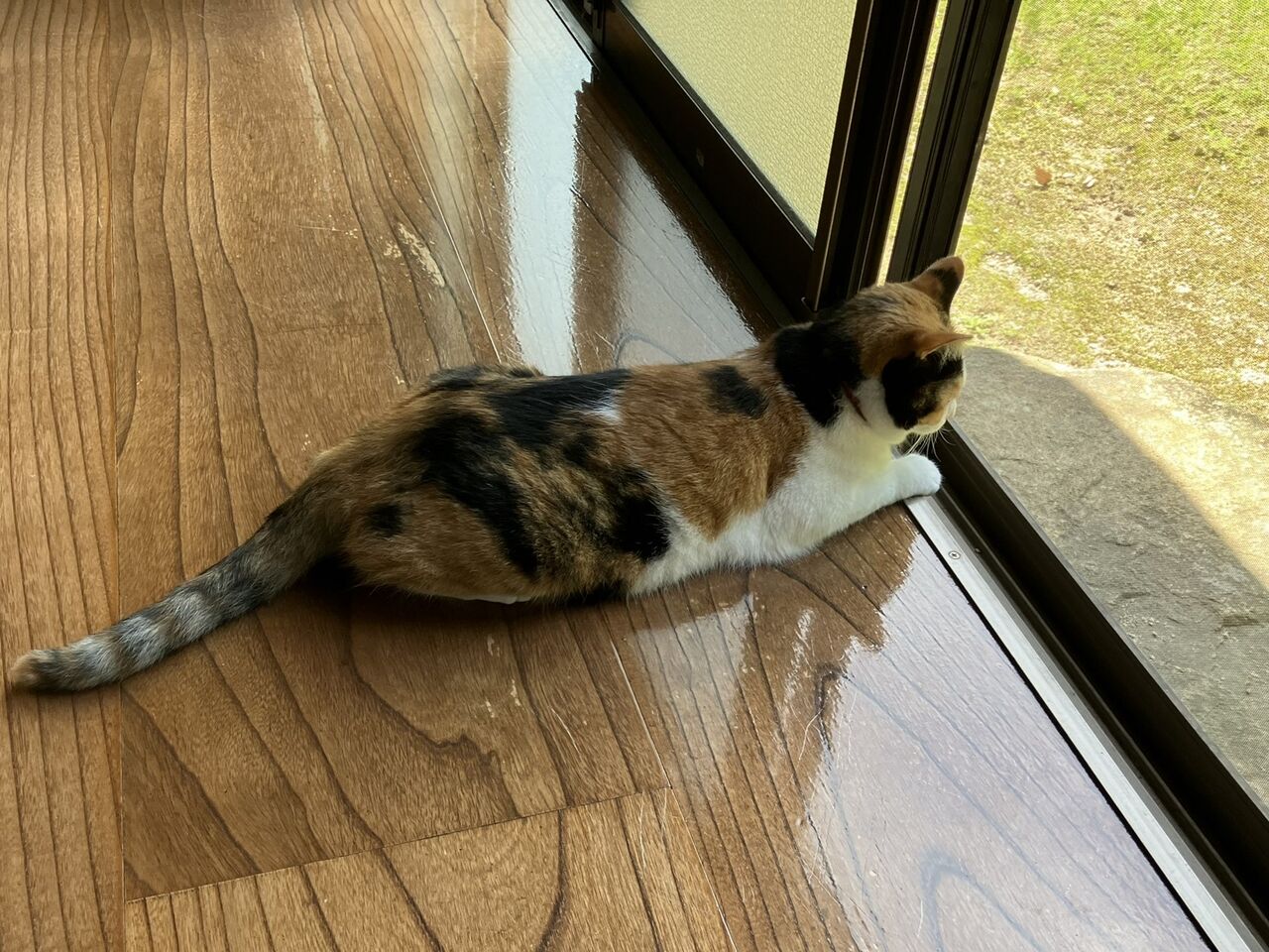 最近は暑いので風の通る網戸の側で外を眺めている事が多いです。