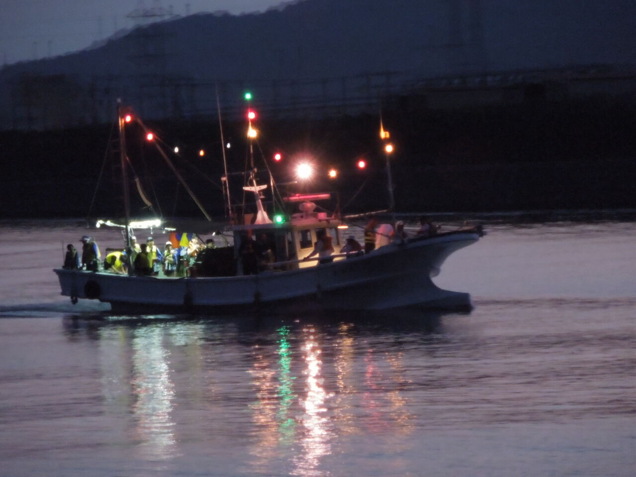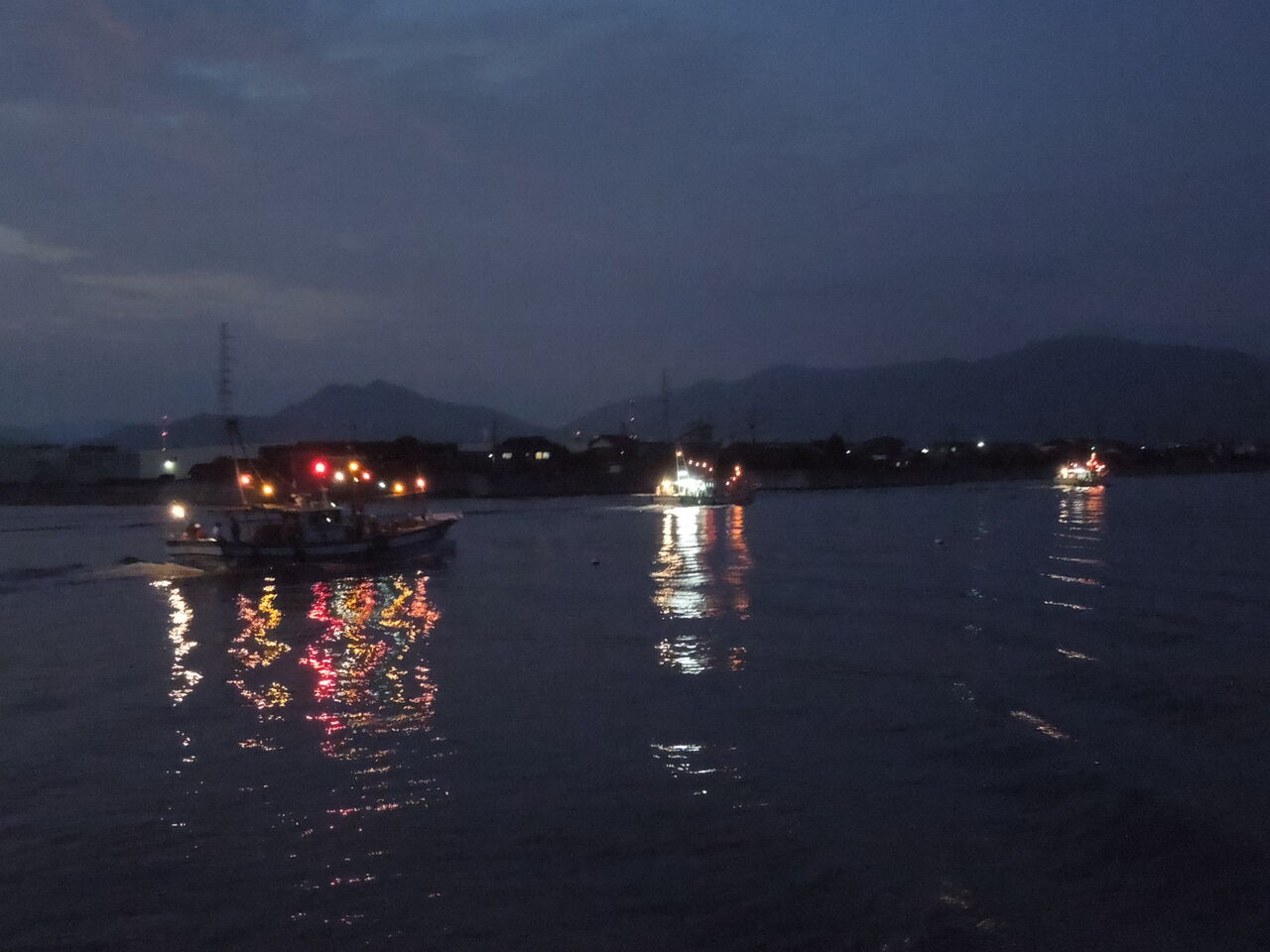 向島厳島神社の十七夜祭は以前は、お神輿を島の東側の厳島神社から西側の小田港まで引いて行って、小田港からは船にお神輿を乗せて東の郷ヶ崎に戻っていました。夕闇の神輿船がとてもきれいだったのですが、2016年に見て以来、見れていません。