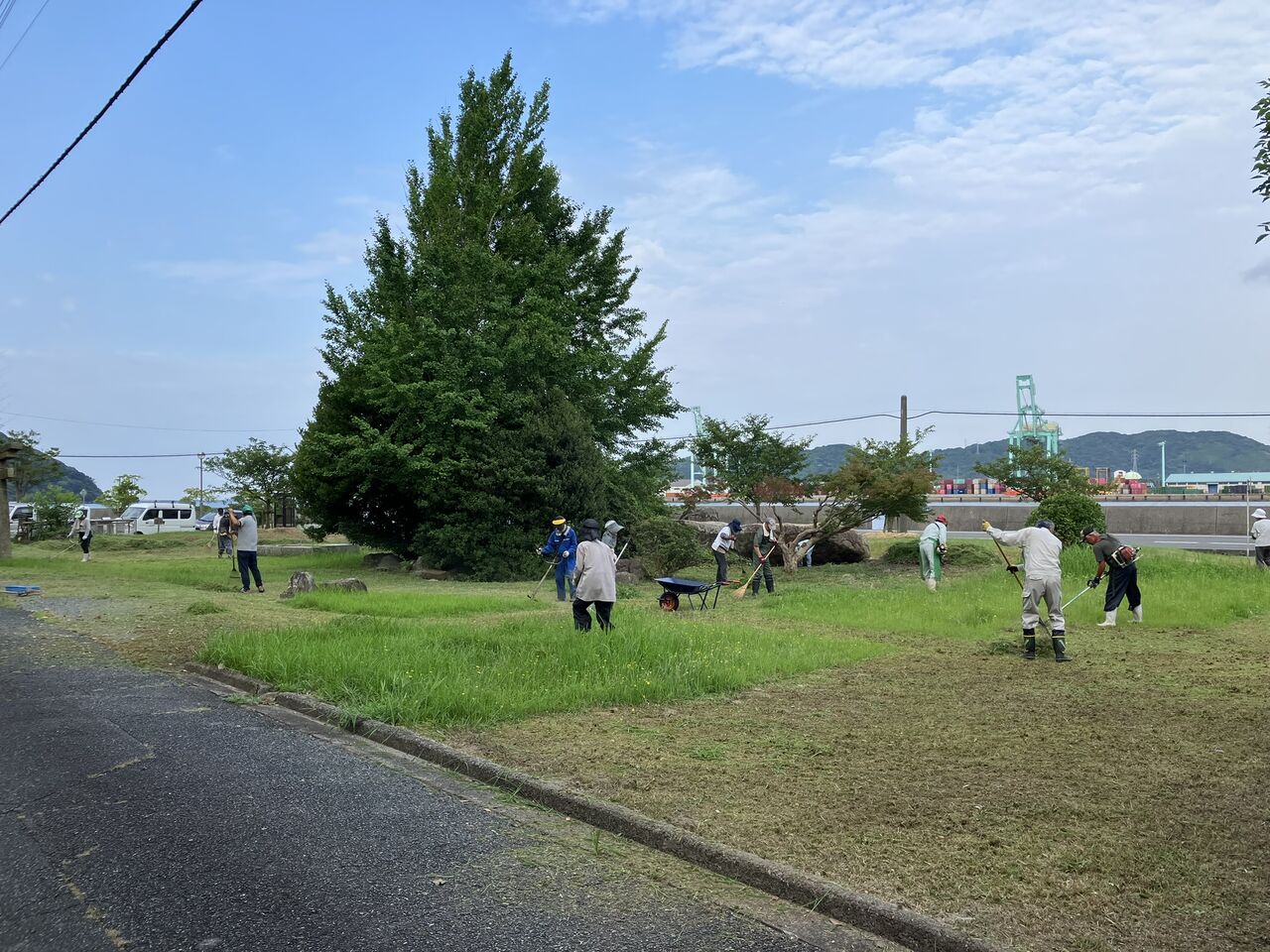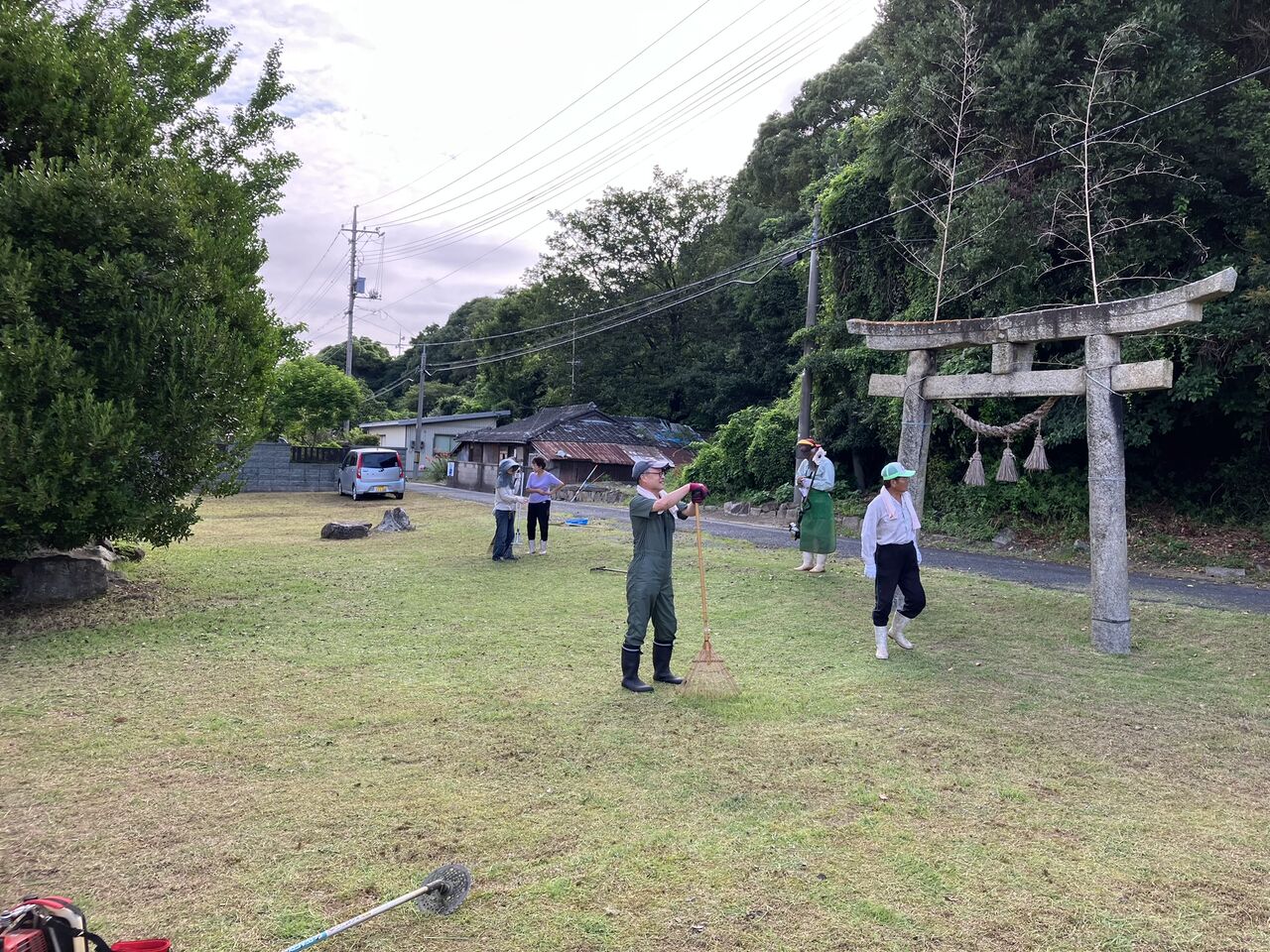 今朝は7時から向島厳島神社の丸山御旅所の草刈りでした。