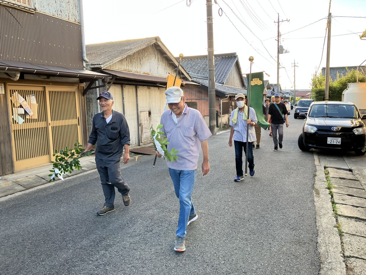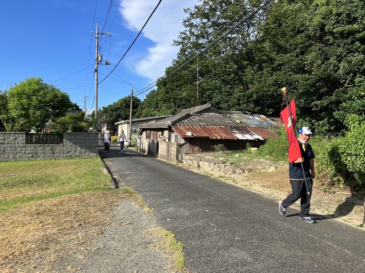 休息後、次の丸山御旅所(お休み所)まで約1.5kmを歩きました。旗持ちの皆さんお疲れさまでした。