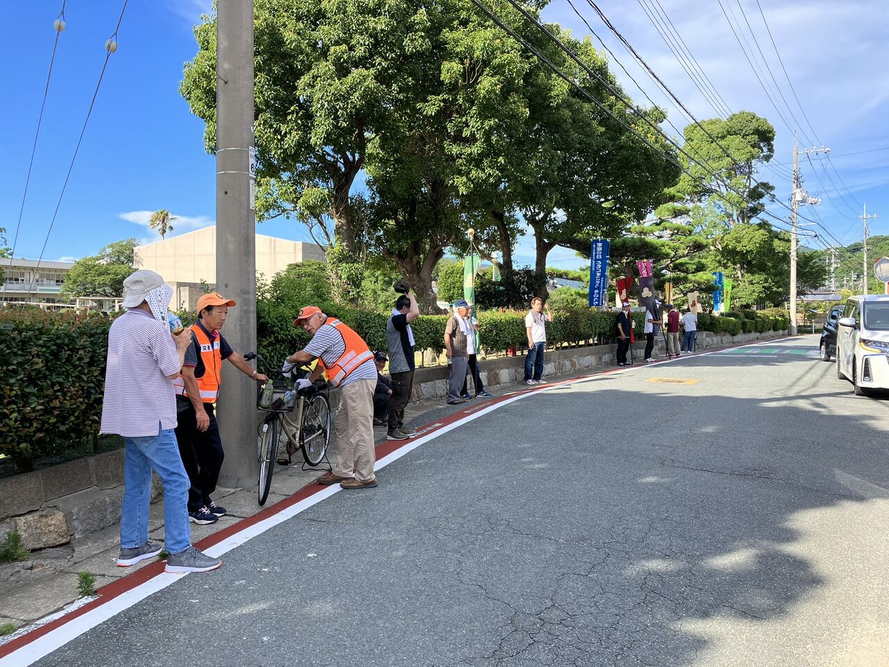 神社から小学校まで1kmくらいですが、暑いので皆さんお疲れです。