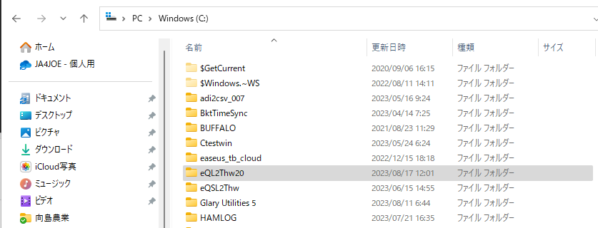 最初に新しい eQSL2Thwのインストール先フォルダーとして、eQSL2Thw20というフォルダーを作りました。旧バージョンのインストール先はeQSL2Thwでした。
