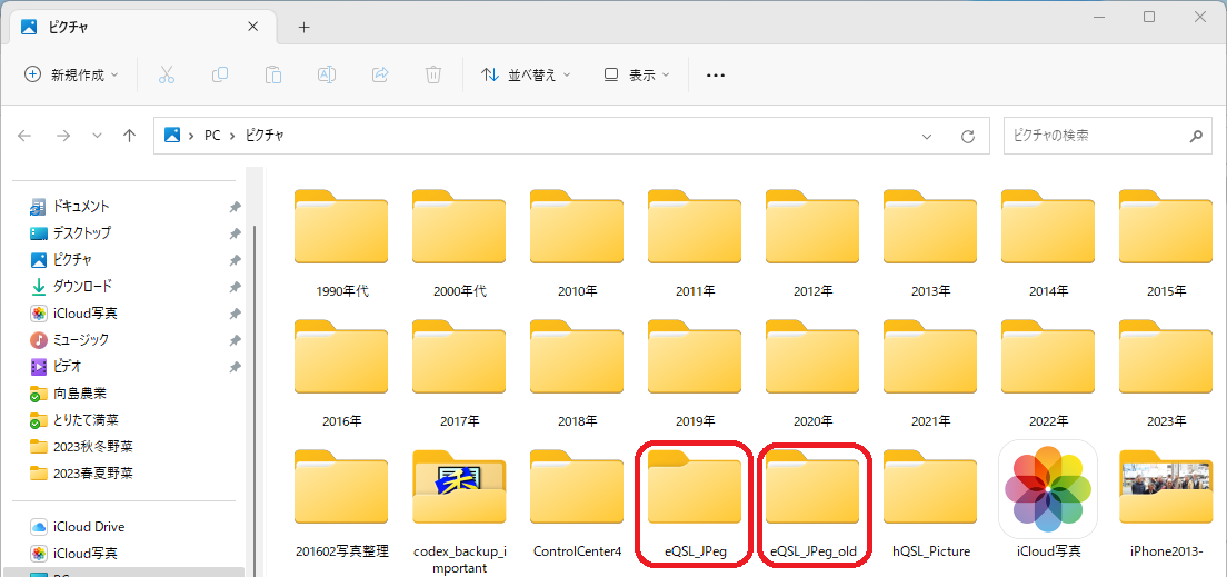 こちらは旧フォルダーをeQSL_JPeg_oldに変更して、新規にeQSL_JPegフォルダーを作りました。