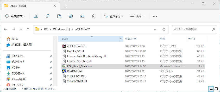旧フォルダーのeQSLThwから QSL_Rcvd_Mark.csv を上書きコピーで持ってきます。