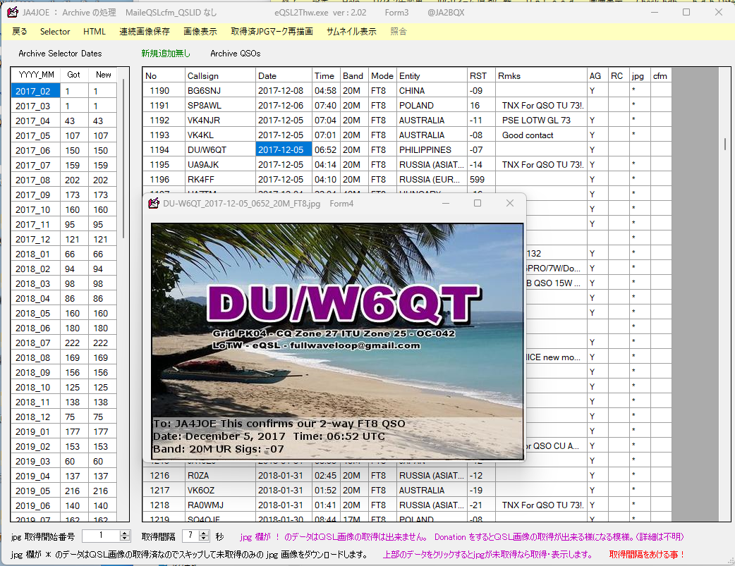 先週の記事「eQSL2Thw ver 2.00 バージョンアップ」でeQSL.ccのArchive画面の変更に合わせて、eQSL2Thwがバージョンアップされた話を書きました。