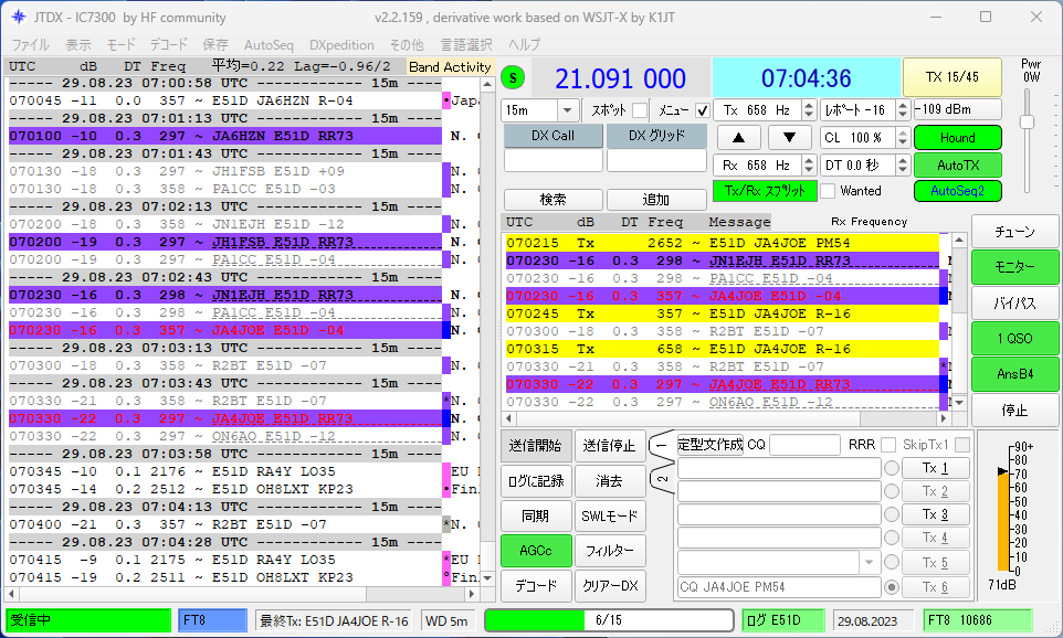 その後、21.091MHzで交信できました。F/Hモードでした。\(^o^)/