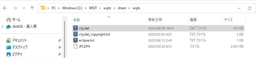 C:\WSJT\wsjtx\share\wsjtx の cty.dat を入れ替えます。