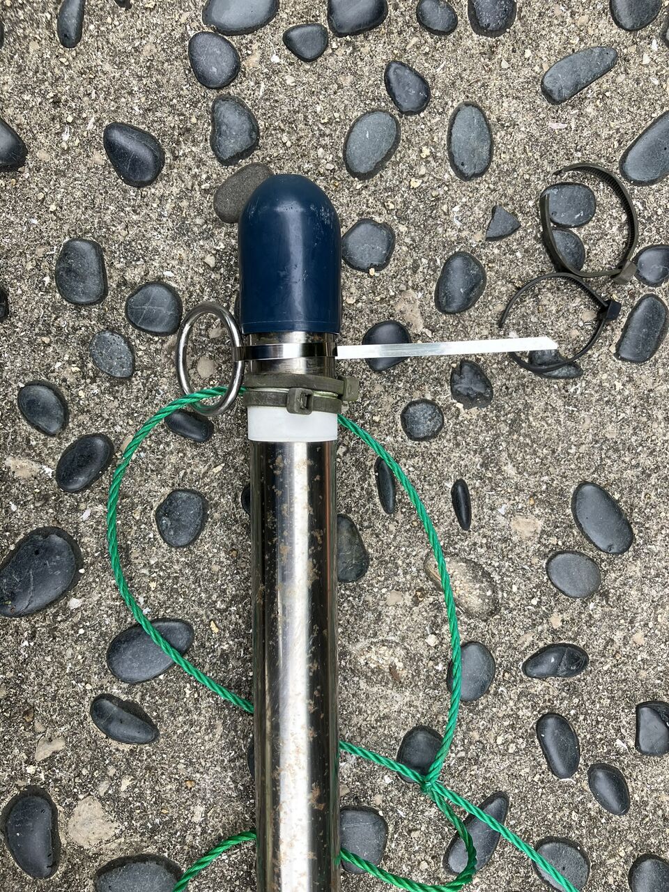 ポール先端にステンレスリングを付けていますが、これも結束バンドで留めてあったので、ステンレス結束バンドに換えました。