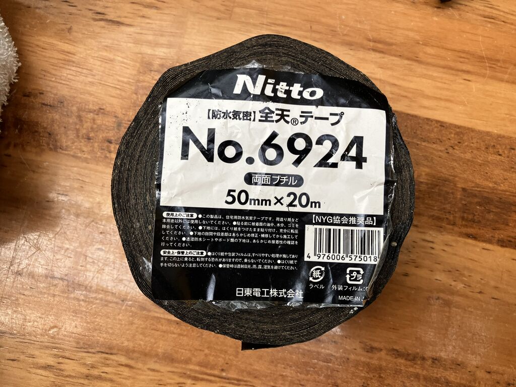 穴の内側に両面ブチルテープを貼ります。