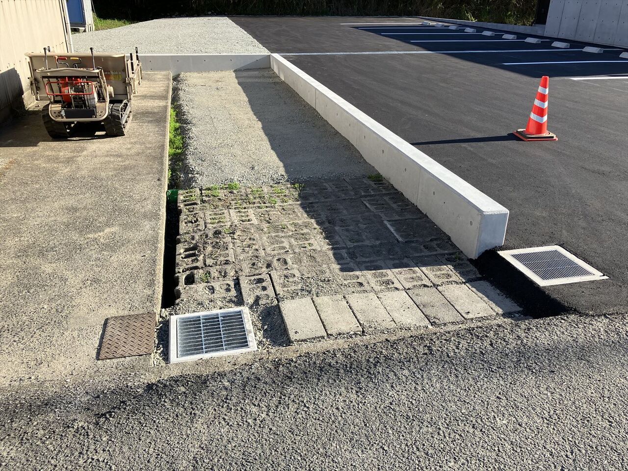 私の農機倉庫との境は雨水が流れ込まないようにしてもらえました。