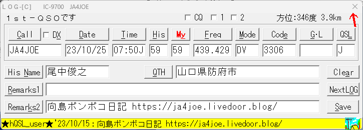 D-STARのモード表記を「DV」にしている方が多いと思いますが、私としては世界標準のADIFでの表記に合わせて「DSTAR」にして欲しいです。(^^;