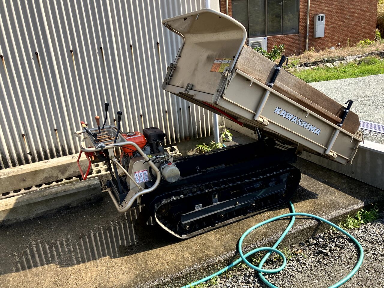 続いて運搬車を洗車しました。牛ふん堆肥を荷台に載せて撒いたので、荷台とクローラー周りを洗いました。