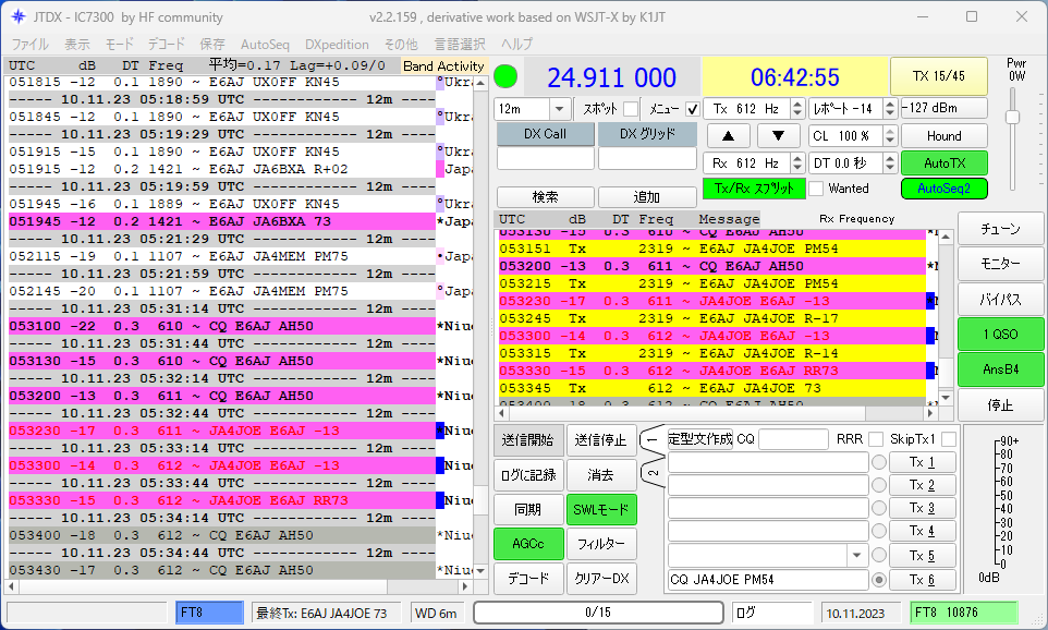 昨日、24.911MHz/FT8で E6AJ ニウエ がCQを出していたので呼んだら交信できました。