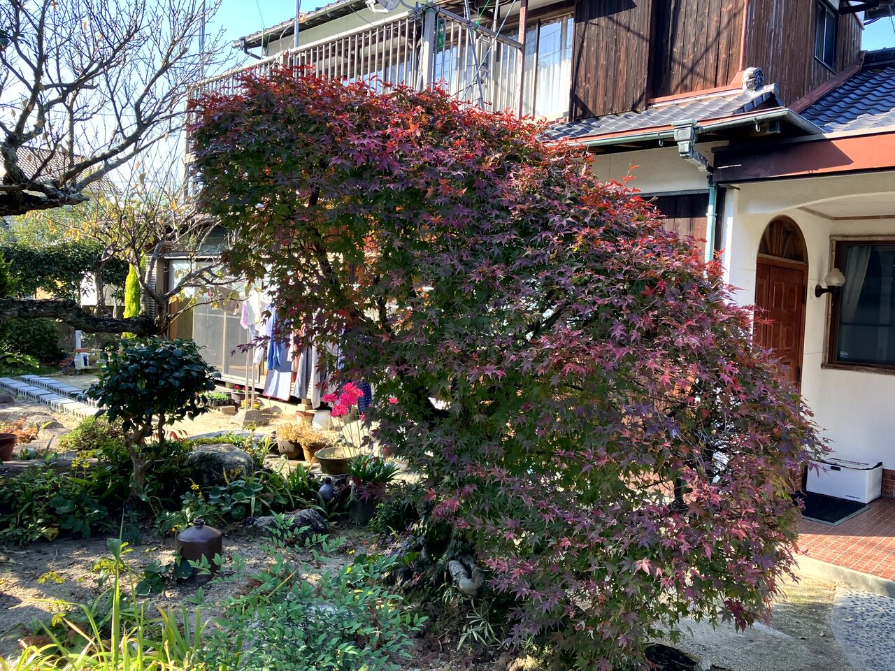 玄関前のモミジは10月に飛び出した枝を切っておいたので、剪定後も変わり映えしませんね。