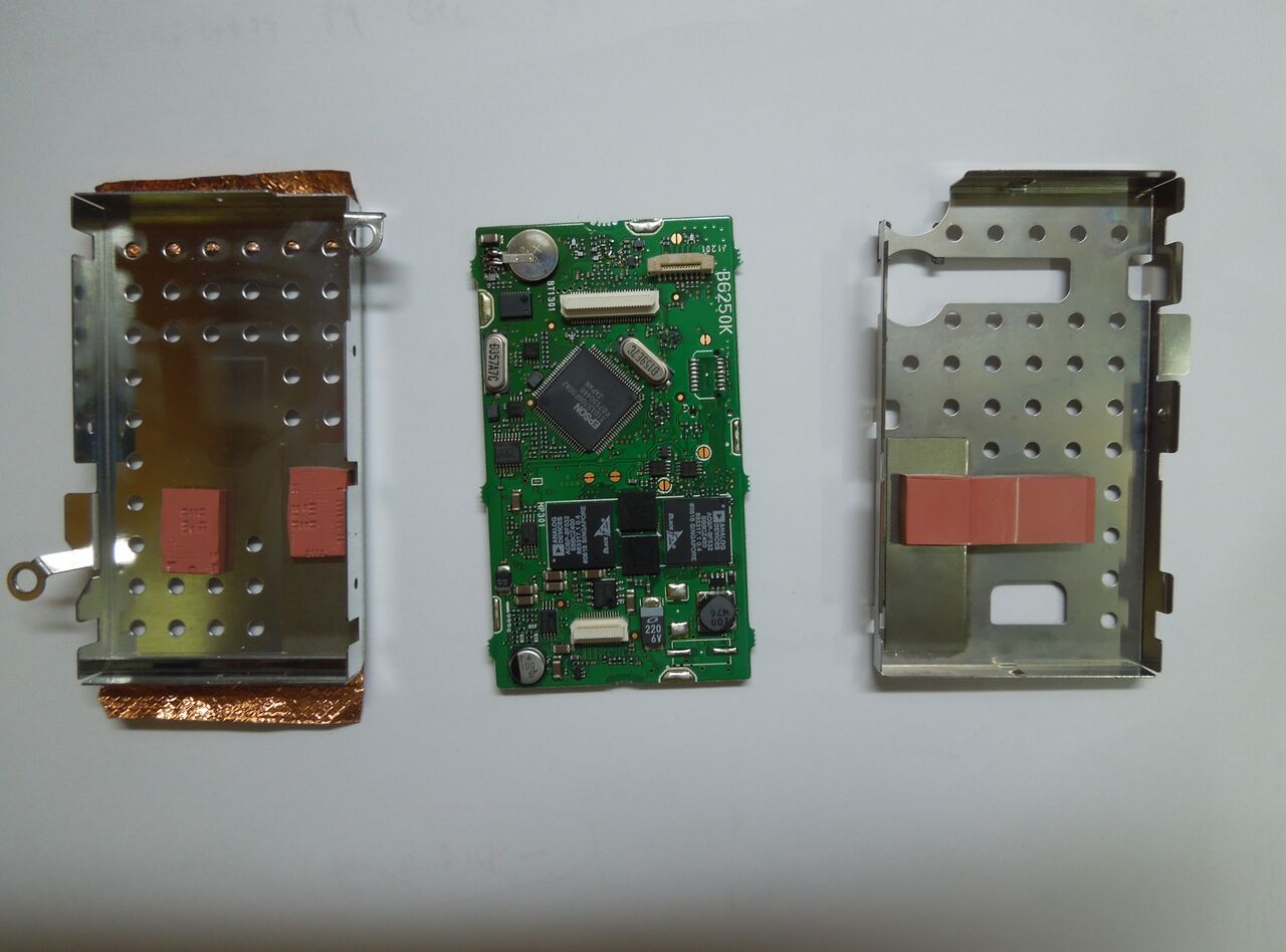 分解時の逆の手順で、制御基板をシールドケースに納めてからメイン基板に取り付け、ネジを止めます。