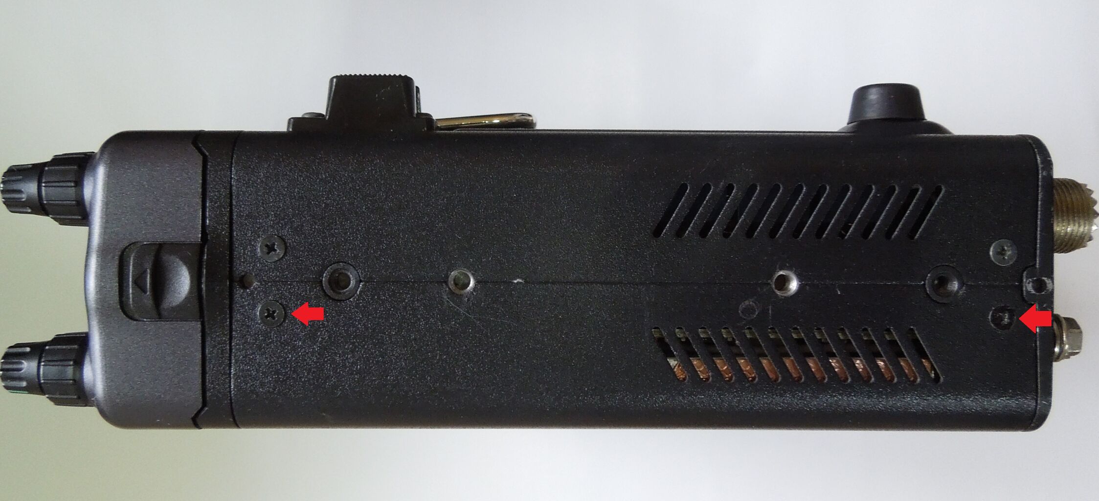 最初にプラスドライバーで上部カバーの上側4箇所、サイド2箇所 x 2 計8本のネジを外します。