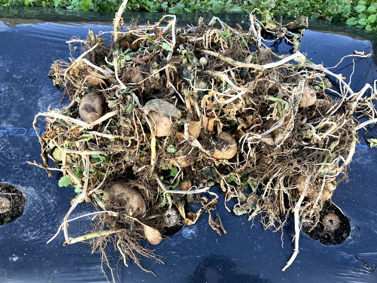 その後、秋ジャガイモの収穫をやりました。秋ジャガイモは植付するのを忘れていて通常より1か月くらい遅く植えたので、成長する前に寒くなって成長が止まってしましました。