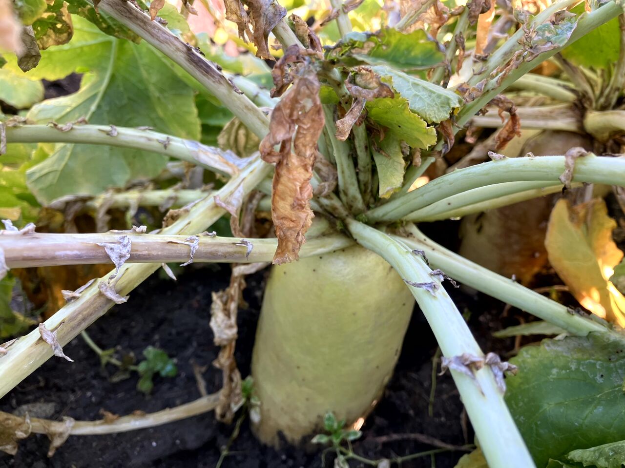 12月末からダイコンの一部で葉が枯れる症状が出ていました。