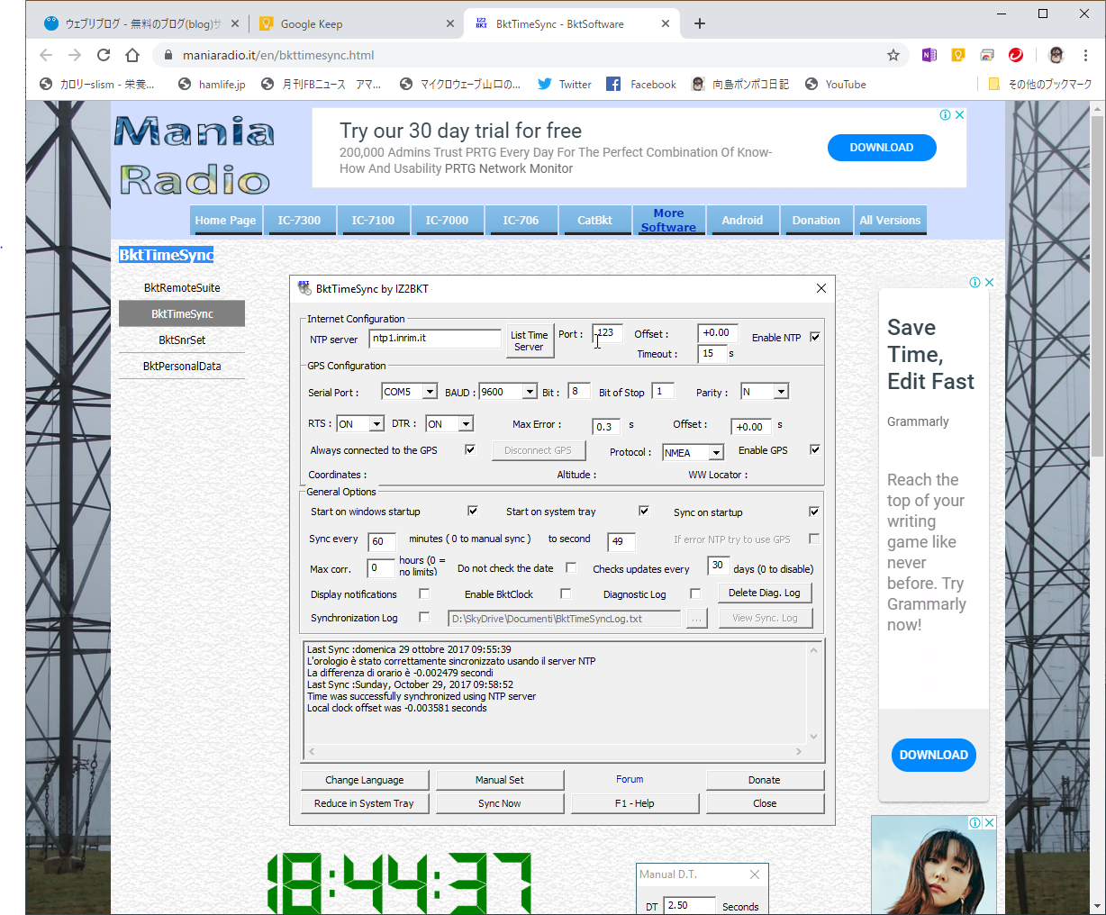英語版の方が良い方は旧記事「FT8通信用時刻合わせソフト BktTimeSync インストール(改版2)」を見てください。