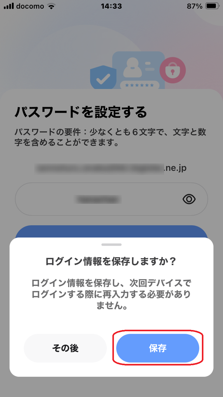 ログイン情報の [保存] を選びます。