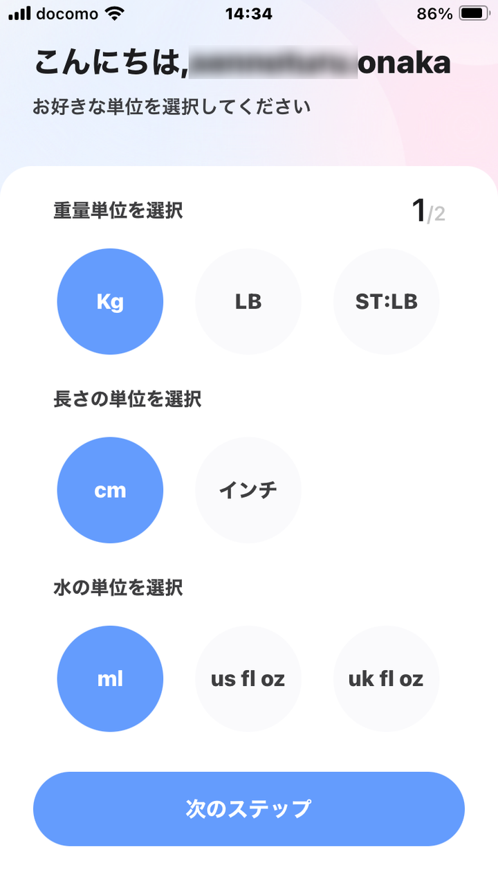 最初に単位を選択する画面が出ますが、デフォルトで良いので [次のステップ] で進みます。