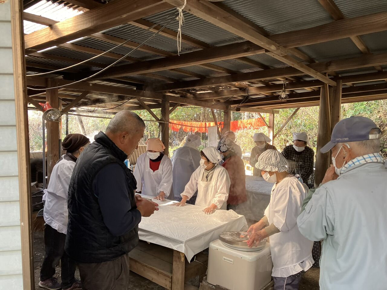 9時過ぎから餅つきが始まりました。向島の方を中心に15人くらいの人が手伝いに集まってました。