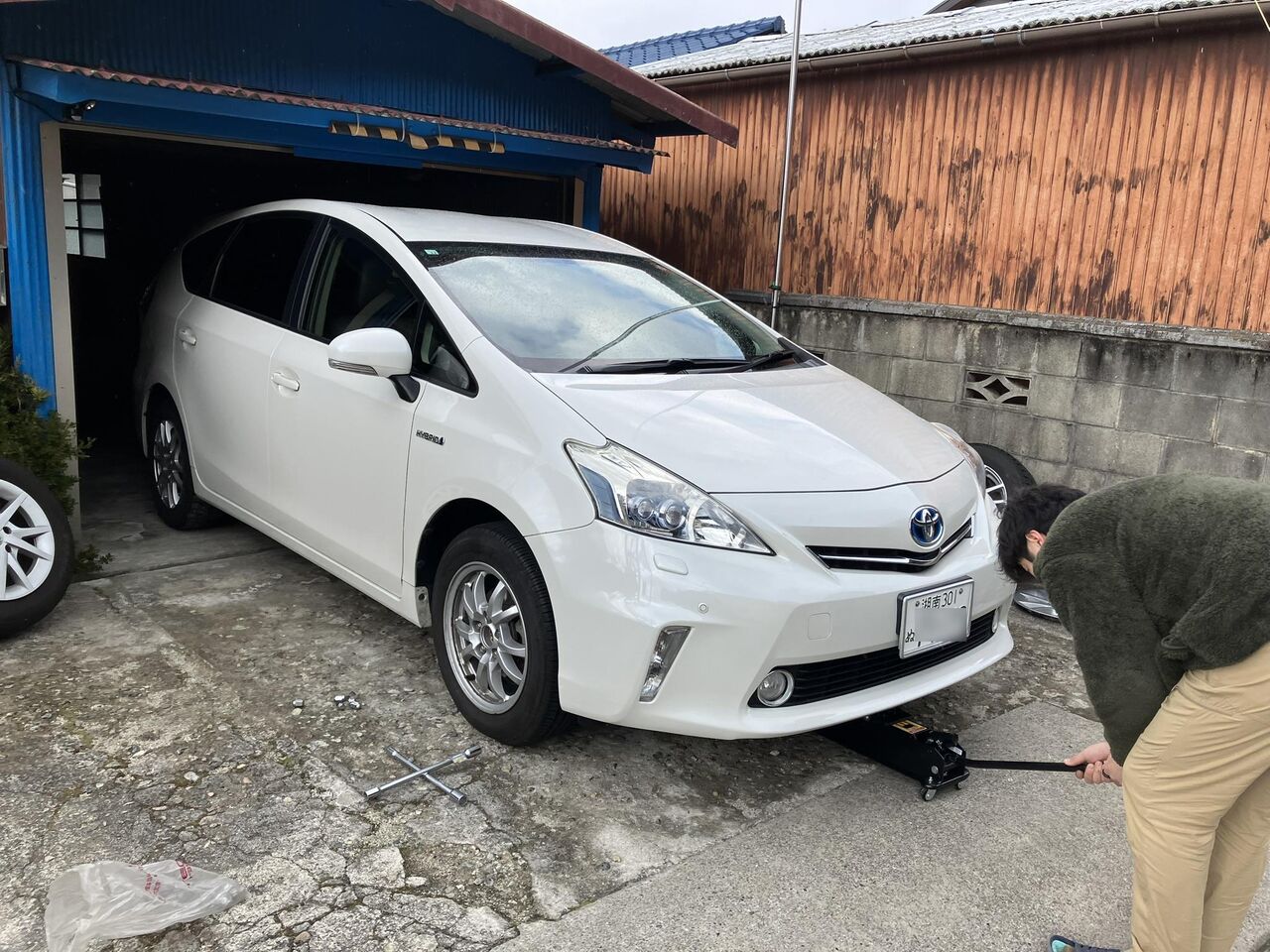 午後はプリウスαのタイヤを夏タイヤに交換しました。