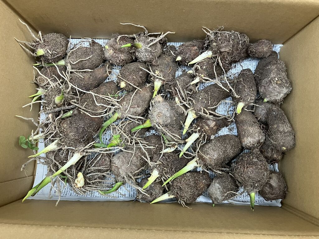 自宅の畑に埋めて芽出ししていた種芋を掘り出しました。