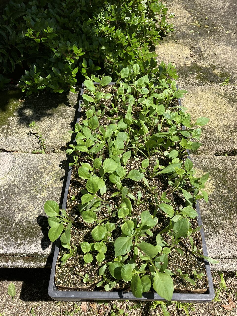 庭で育てている苗は家内が種を蒔いたダリアだけです。気温が高いのでビニールトンネルから出しました。
