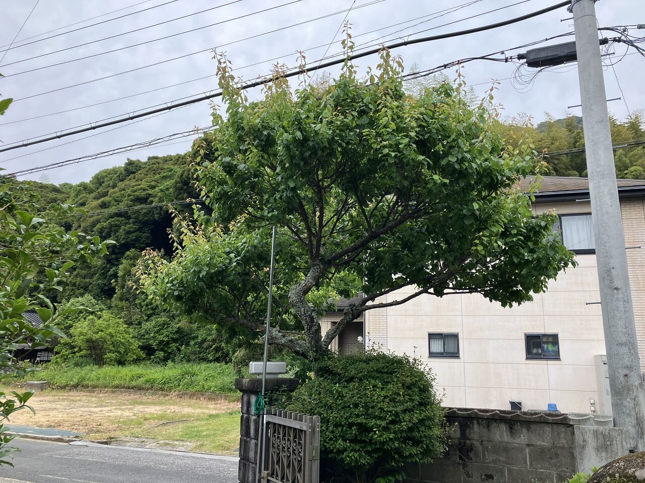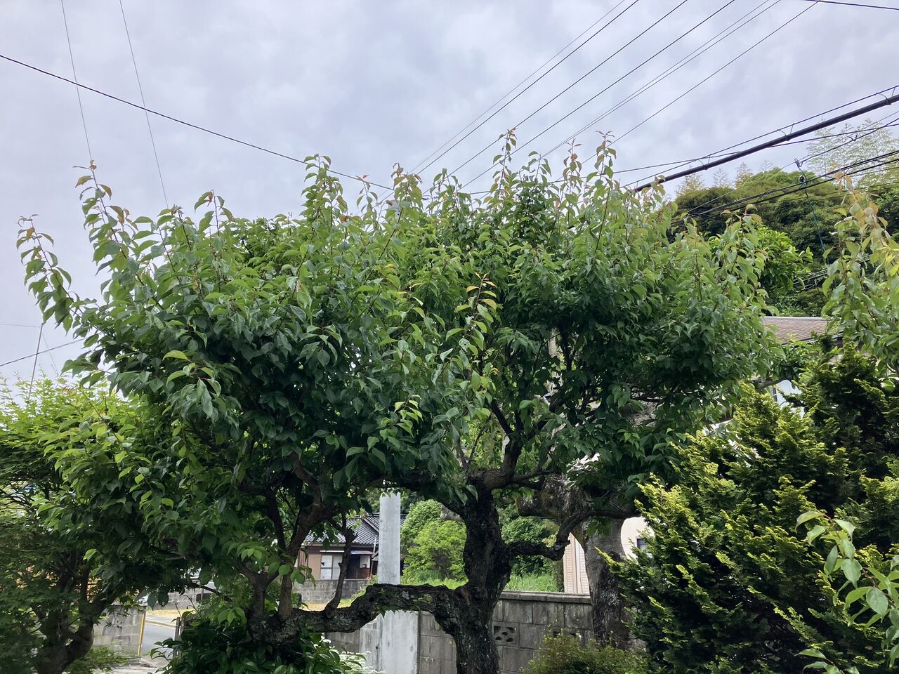 庭中央の一番大きな木はほとんど実が落ちて、少ししか残っていませんでした。