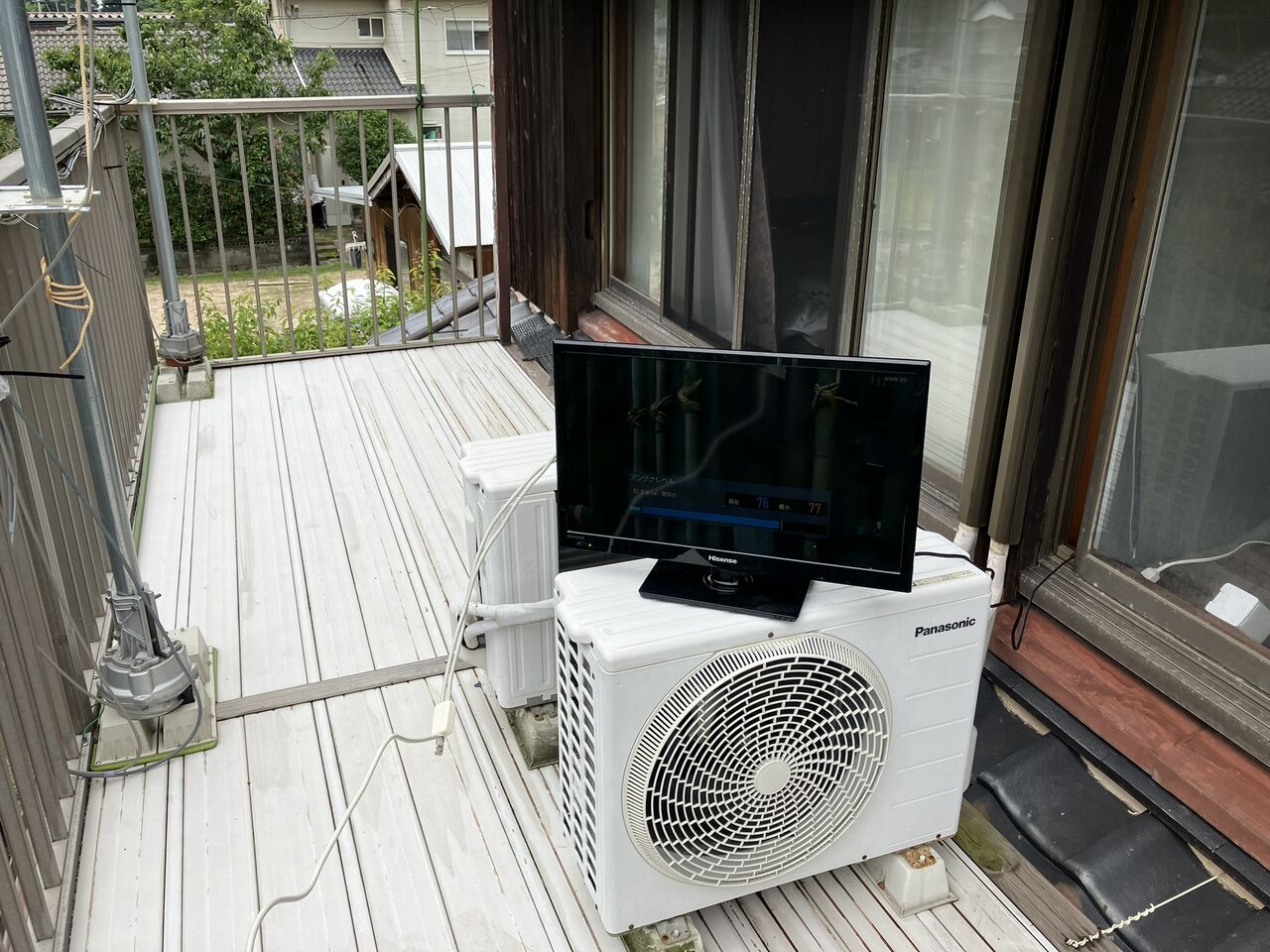 小型テレビをベランダに持って来てBS受信レベルをモニターしながらやりました。