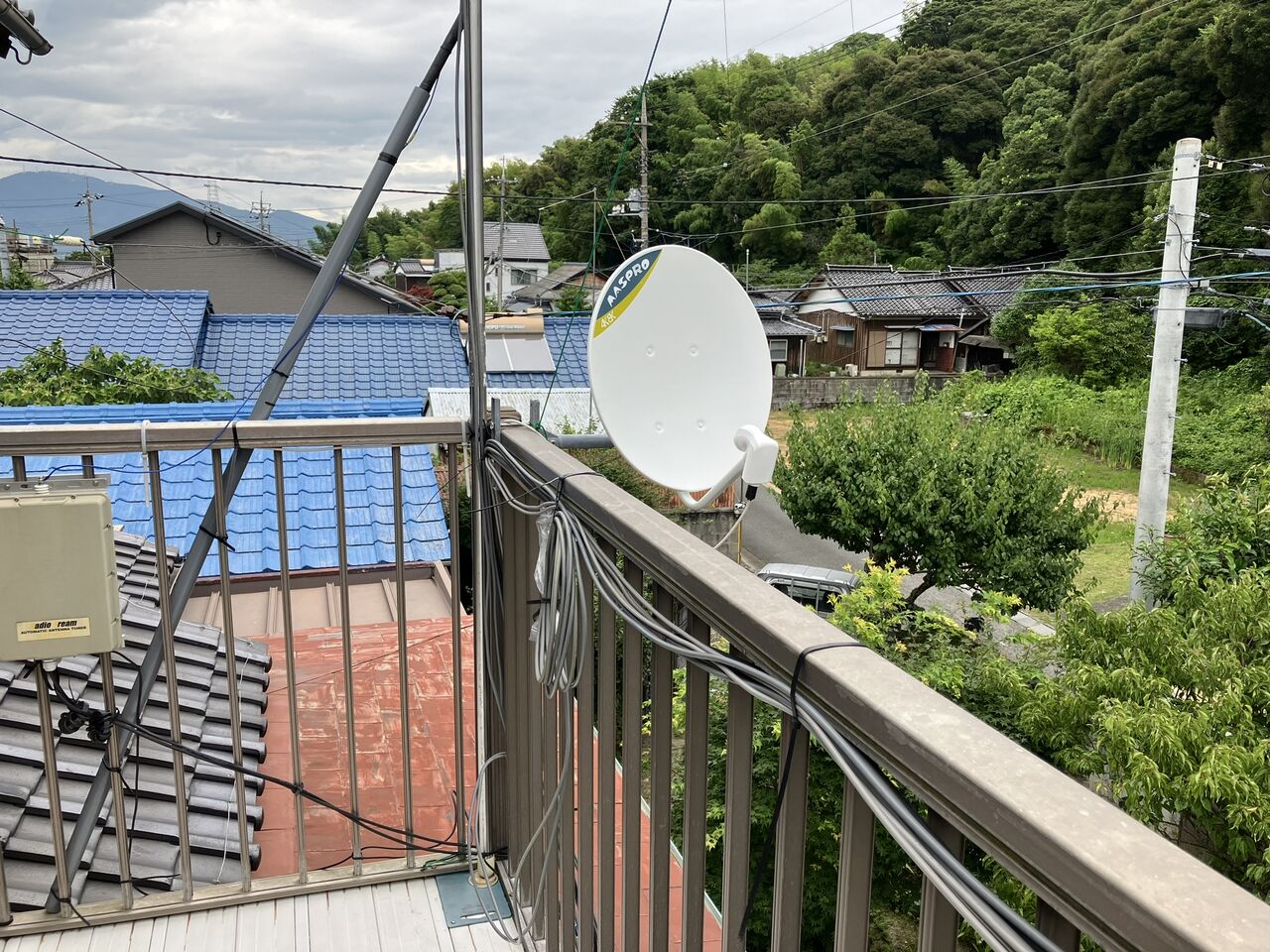 このBSアンテナは2016年に向島に帰って来た時に設置したので8年経っています。そろそろ寿命かなという事で交換する事にしました。