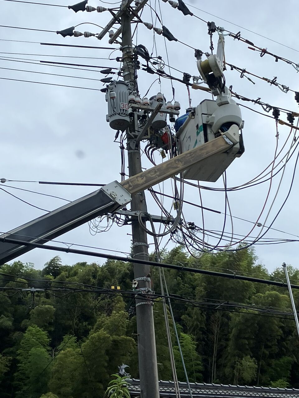 そして、9時50分にバイパスケーブルへの切り替えが行われて、我が家を含む3本の電柱の内側の家は停電状態になりました。(^^;