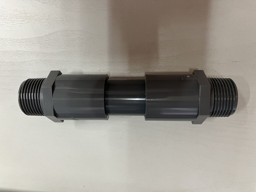 3方バルブは3口ともオスネジなので、川側はオスからメスのカップリングに変える必要があります。