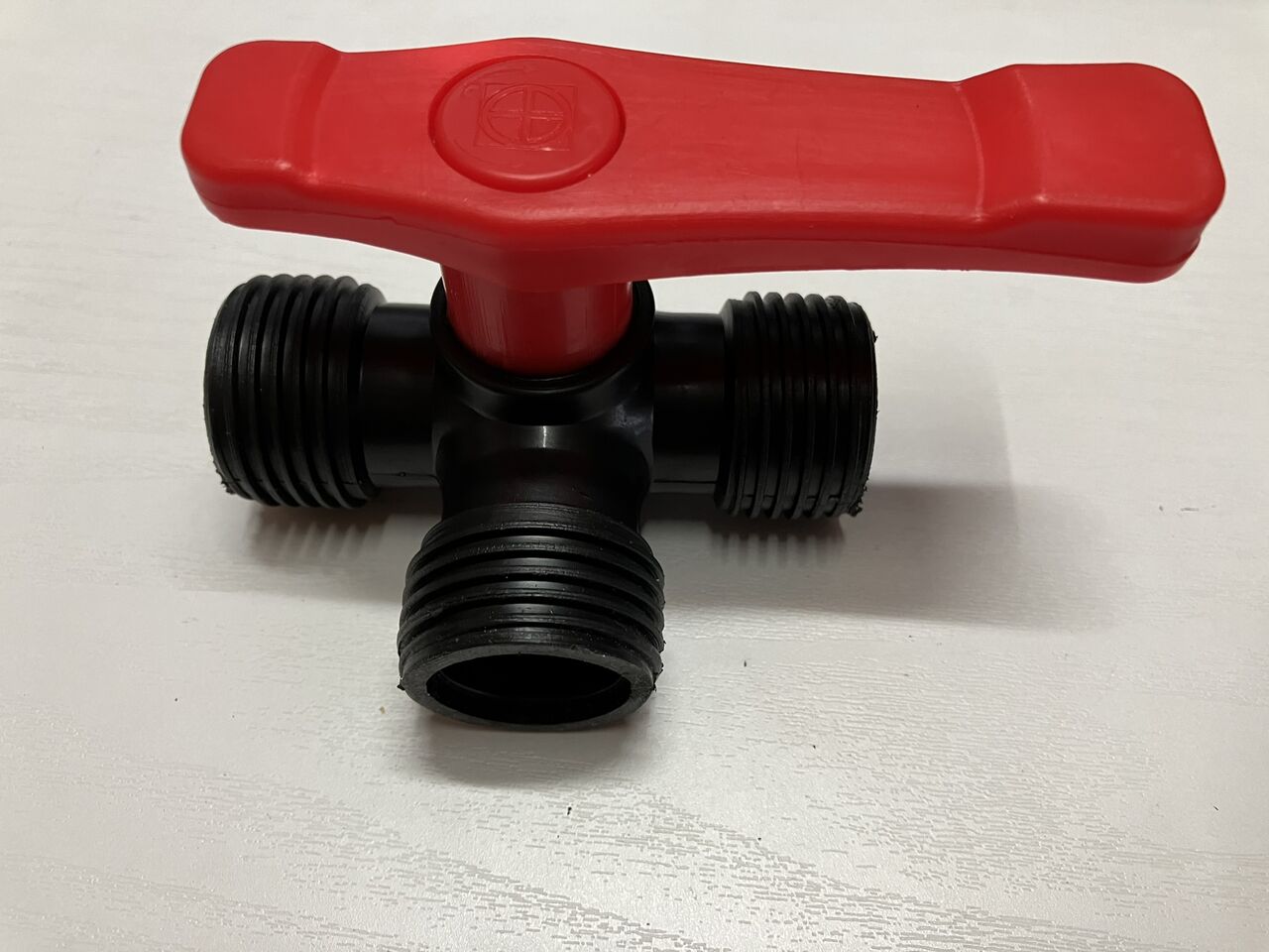 購入した3方バルブにホースカップリングを付けてみたら、バルブの口のネジ溝までハマらないのでバルブのパイプ部先端をペーパーヤスリで削ってネジ溝までの位置を短くしました。