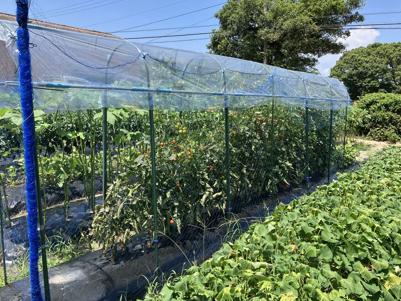 現在、東側畑では、ピーマン、エダマメ、オクラ、トマトが採れています。