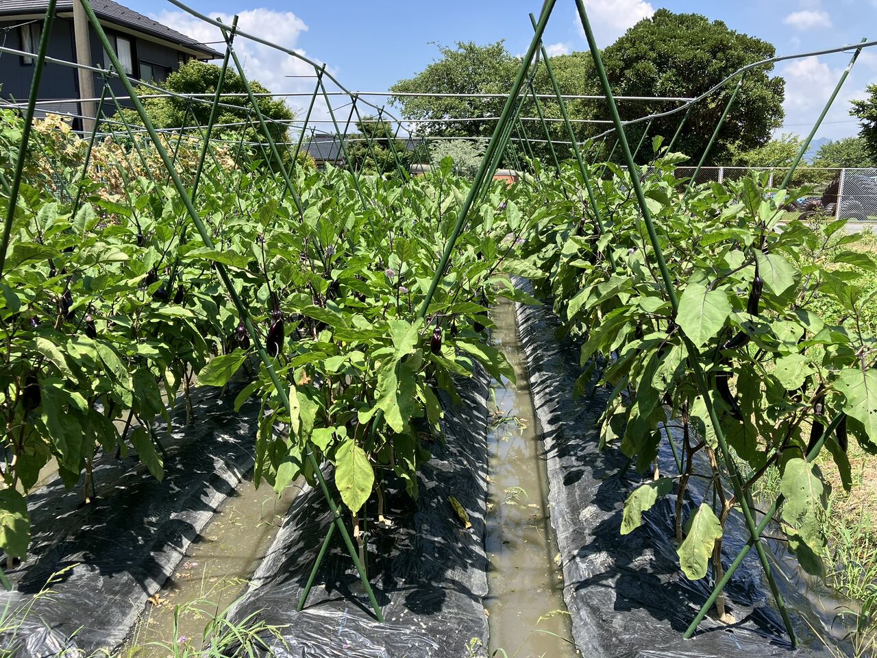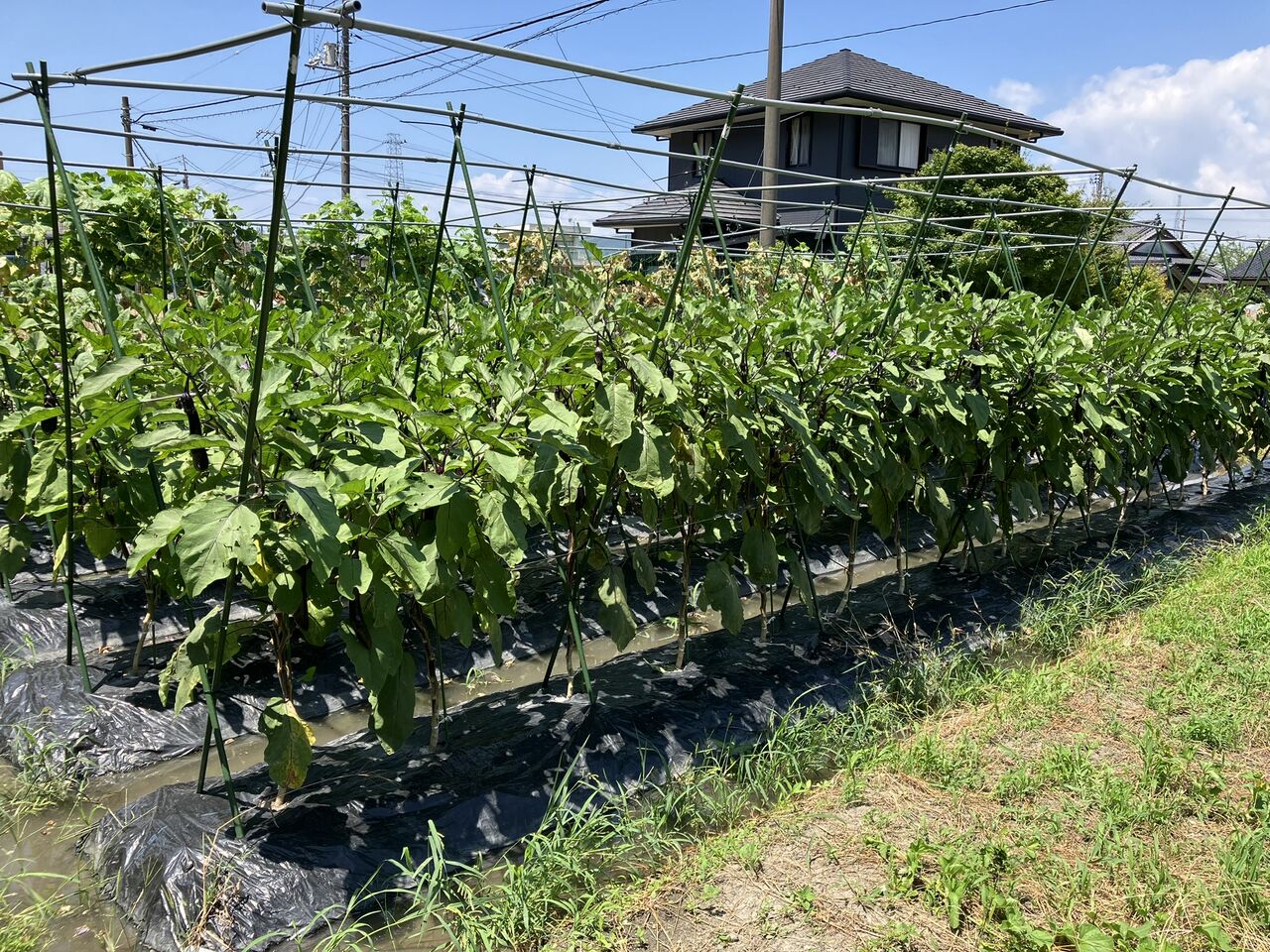 ナスは大きくなったので3段目の誘引ヒモを張って誘引作業をやらないといけないのですが、昼間暑くて朝と夕方しか畑に行ってないので後回しになっています。(^^;